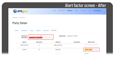 - 公認AMLスペシャリスト認定資格(CAMS)保持者による標準シナリオ実装済み。