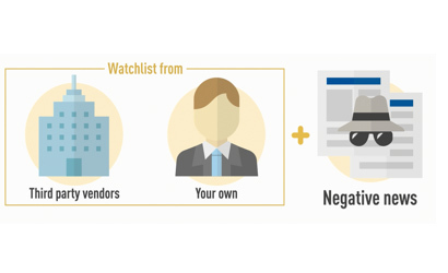- 最新ウォッチリストやネガティブニュース、業界独自リスト等を使用したスクリーニング。